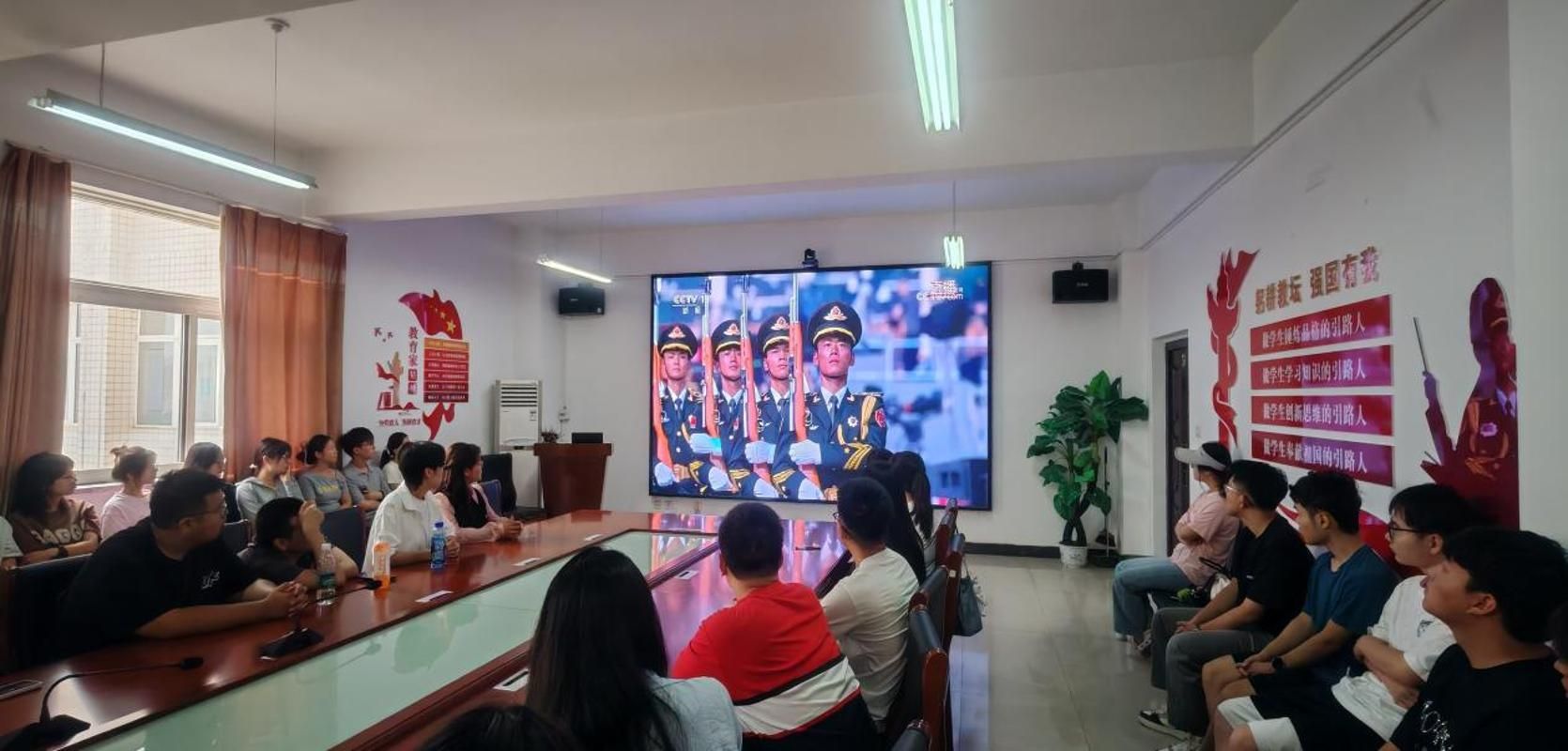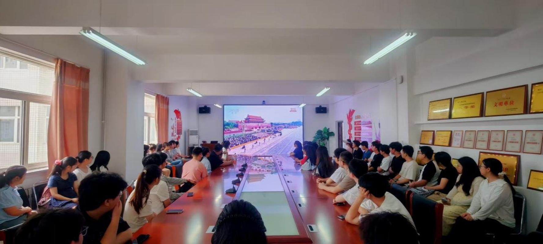 9月3日上午,纪念中国人民抗日战争暨世界反法西斯战争胜利80周年大会在北京天安门广场隆重举行。中共中央总书记、国家主席、中央军委主席习近平发表重要讲话并检阅受阅部队。304永利集团在校师生聚集在会议室,集体观看盛大的九三阅兵直播。
