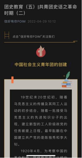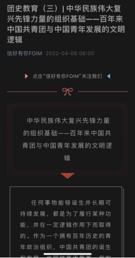 凝聚奋进力量,牢筑信仰之基。304永利集团团委面向青年员工广泛开展团史学习教育,在学院公众号“信好有你FOIM”上开辟“团史教育”专栏,推进理论学习入脑入心,引导青年学史知史,爱团爱党,赓续红色血脉,唱响“请党放心,强国有我”最强音。