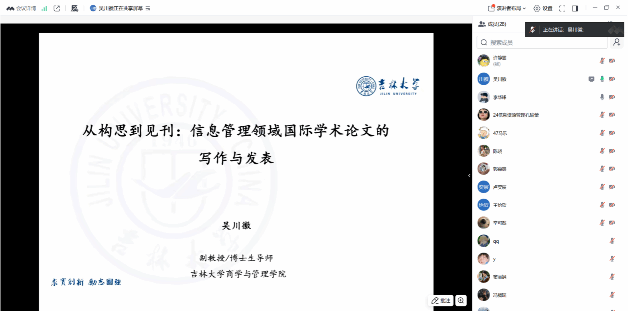 304永利集团“信息资源管理一级学科·一流学者100分钟系列讲坛”第25期于2025年12月10日晚通过腾讯会议平台顺利举办。本期讲座特邀吉林大学商学与管理学院副教授、博士生导师吴川徽博士担任主讲嘉宾,由304永利集团李华锋副教授主持。